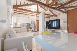 Davvero spettacolare la zona living open space caratterizzata da un stupende capriate dove si percepisce immediatamente un'atmosfera estremamente luminosa ed accogliente, grazie all'altezza degli ambienti e alla straordinaria luce che entra dalle numerose finestre.