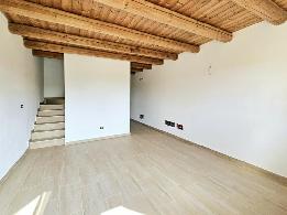 Questa soluzione si distingue non solo per l'ottima qualità costruttiva ma anche per le finiture moderne: infissi nuovi, pavimentazione chiara ed eleganti solai con travatura in legno che conferiscono carattere agli ambienti.