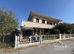 Al piano terra si accede su un ampio ingresso con scala a vista che porta al primo piano, a sinistra troviamo il soggiorno con caminetto, mentre sulla destra rispetto l'ingresso abbiamo la sala da pranzo, la cucina e un ripostiglio/lavanderia collegato ad un altro ripostiglio verandato con sbocco sull'esterno, sul sottoscala bagno di servizio. Salendo al primo piano troviamo tre camere da letto matrimoniali, una stanza guardaroba ed un secondo bagno finestrato, dal corridoio del reparto notte e da una delle camere matrimoniali si accede all'ampio terrazzo di 45 mq.