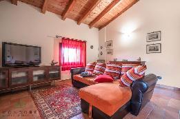 Molto luminosa la zona giorno con un bellissimo soppalco e doppio volume con soffitto e travi a vista .