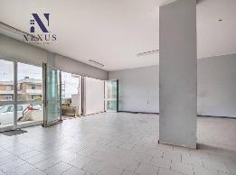 Il locale ha una superficie di circa 390 mq commerciali. Al piano terra rialzato, alto 3,30 m, troviamo un ampio ambiente ad uso attività commerciale con ufficio e bagno, un secondo ambiente ad uso laboratorio ed un secondo bagno, per un totale di circa 240 mq. Questo piano vanta della presenza di sei vetrine, delle quali ben cinque sono affacciate sulla strada.