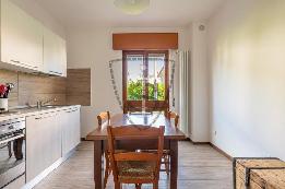 L’ingresso dell’abitazione introduce in una luminosa zona giorno con cucina a vista, compresa nel prezzo, e dotata di ottima esposizione che garantisce la luce naturale.