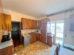 L’ingresso conduce ad una spaziosa zona giorno collegata a una cucina abitabile separata, anch’essa molto luminosa e dotata di accesso diretto al poggiolo coperto. La cucina è arredata con mobili in legno massello dal sapore classico, completa di lavastoviglie e spazi funzionali per la vita quotidiana.