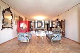 Disposto su un'unico piano, abbiamo: cucina arredata comprensiva di elettrodomestici, due camere matrimoniali da 18.9mq e 17.9mq, piu' una singola con studio rispettivamente da 11.5mq e 7.9mq. L'appartamento gode di due spaziosi bagni, di cui uno finestrato con vasca di 9.56mq e l'altro, sempre finestrato, da 12.5mq. Questi ambienti sono tutti collegati da uno ampio disimpegno di ben 61mq, che funge anche da salotto. Un vano scala permette di accedere alla soffita abitabile.