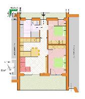 Questa soluzione si trova al piano primo dell'edificio ed è composta da ingresso, ampia zona giorno di circa 25mq con ampia vetrata che serve uno spazioso terrazzo panoramico di ben 17mq, bagno finestrato di quasi 9mq, 2 stanze da letto matrimoniali, garage con cantina al piano interrato, posto macchina privato.