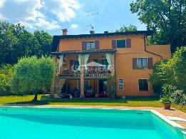 La proprietà vanta finiture ricercate come pavimenti in cotto, caminetti tradizionali, cucina dallo stile shabby chic e travi a vista decapate. Gli ampi porticati affacciati sulla piscina privata offrono spazi ideali per momenti conviviali all’aperto o rilassanti pomeriggi nel verde; il terrazzo coperto regala una suggestiva vista panoramica sulle colline circostanti.